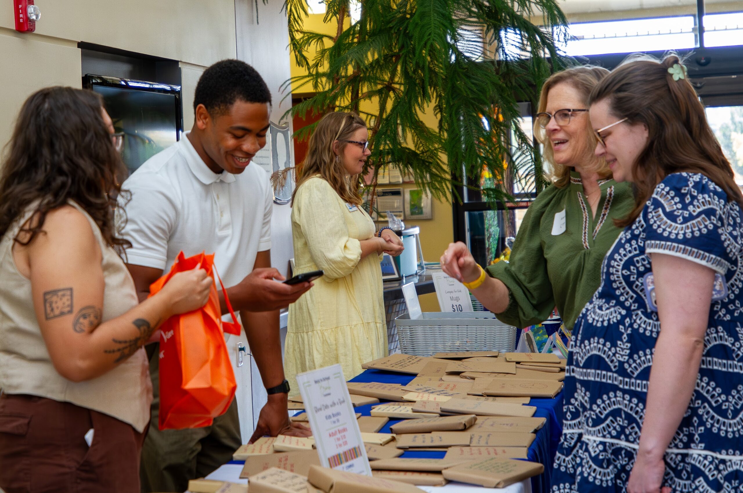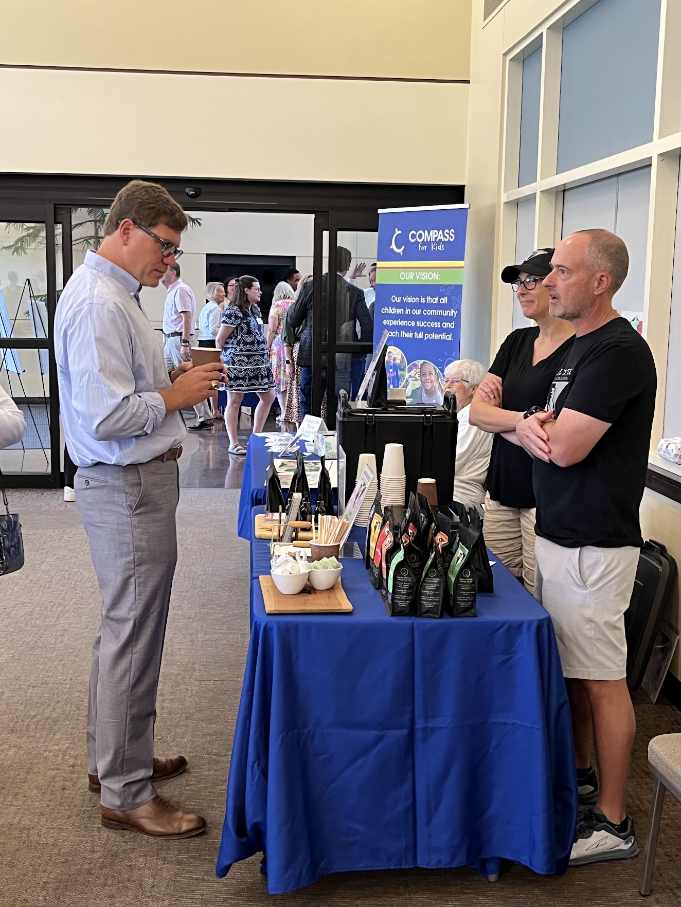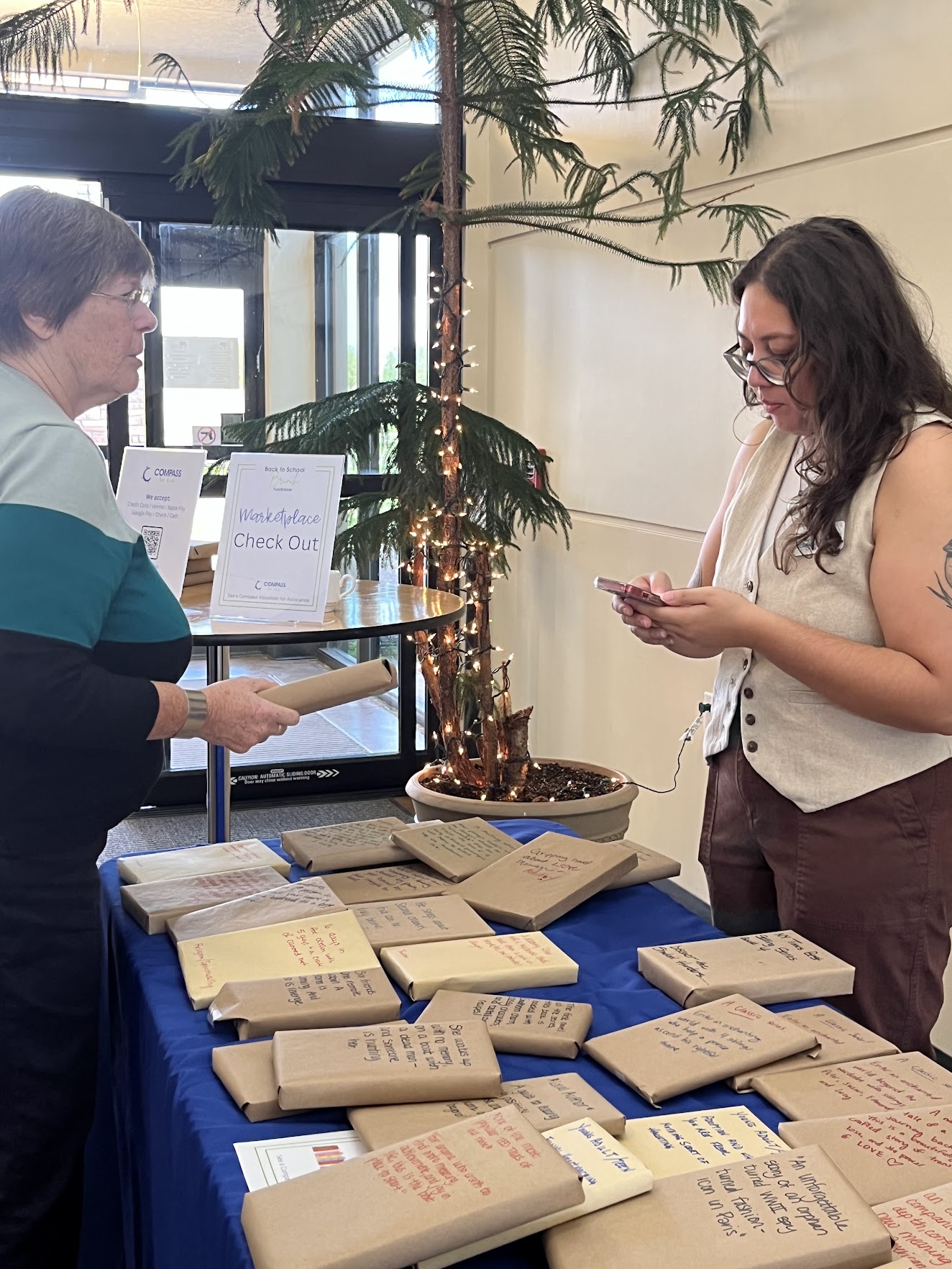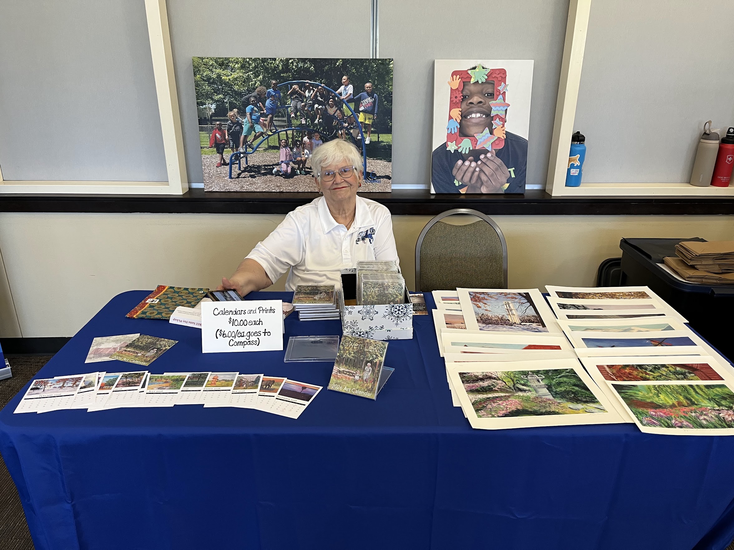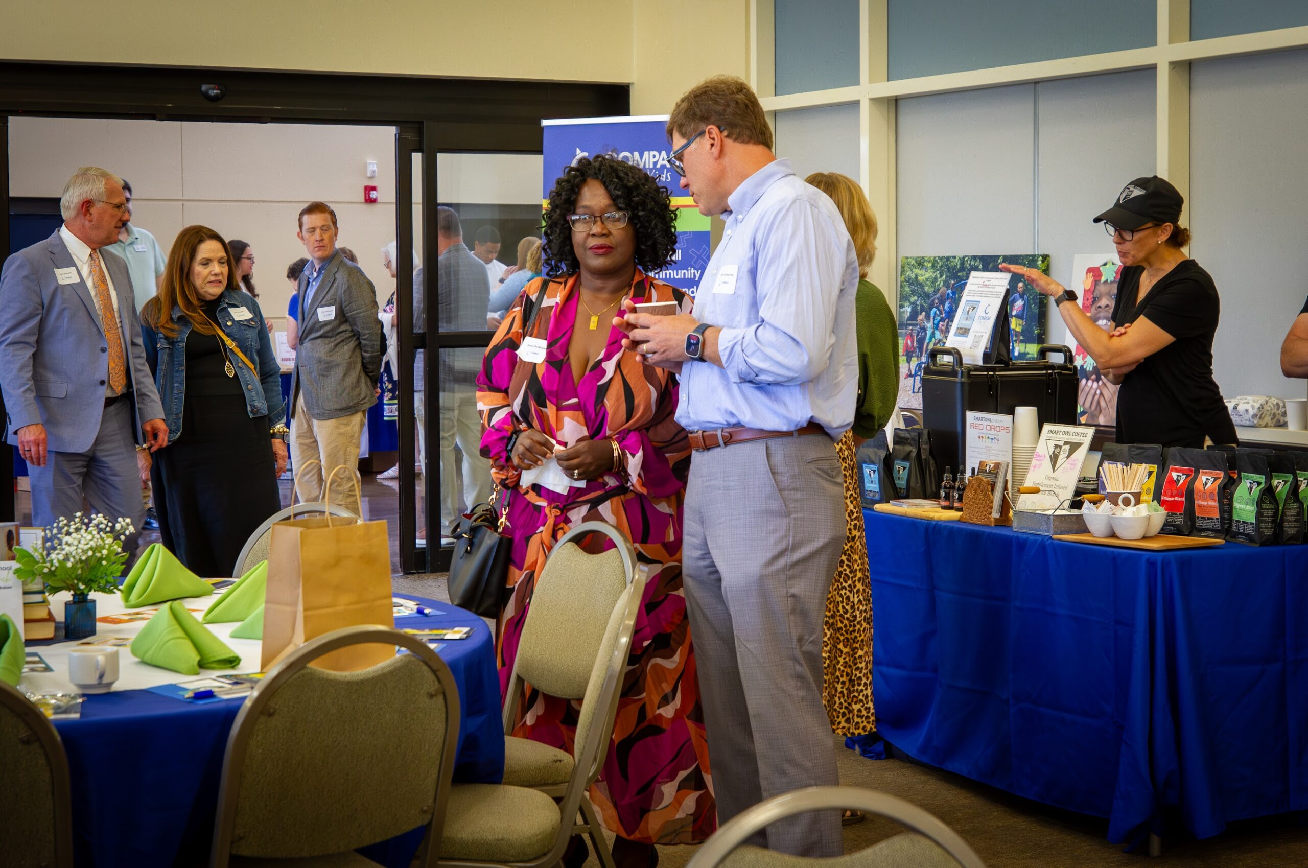 Our Compass Marketplace was bustling with activity! Guests browsed and shopped mystery books from “Blind Date with a Book”, Compass T-shirts, mugs, kid-created grab-and-go artwork, and notecards featuring Compass art, a crowd favorite! We were also thrilled to feature Gwen Lewis with her beautiful fine art calendars and Smart Owl Coffee, who offered samples of their Essentials blend from the “Give a Hoot” fundraiser.