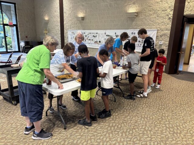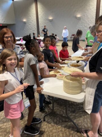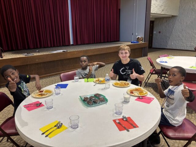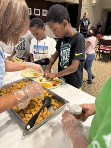 Every evening wraps up with a hearty, family-style dinner before students head home with a bag of shelf-stable food through our Backpack Feeding Program.